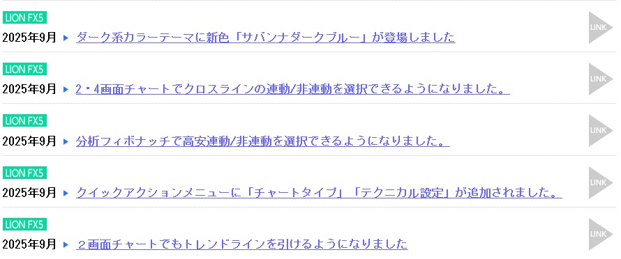 ヒロセ通商[LION FX]取引ツールのバージョンアップ情報(2025年9月分)
